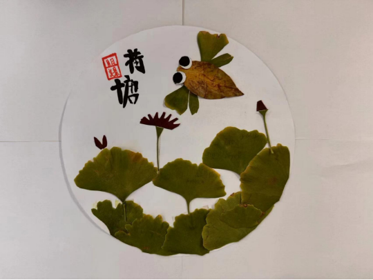 活动中,学生暂时放下书本,漫步在校园的林荫小道上,亲自捡拾美丽的落叶。随后,他们用剪刀、白纸、硬纸板和胶水等工具,利用落叶开展了别开生面的艺术创作。他们或剪或拼,或贴或画,每一片落叶都在他们的手中焕发了新的生命。经过大家巧妙的设计和排版,一幅幅生动描绘秋天景象的作品跃然纸上。这些落叶艺术品成为了美化学校环境的独特装饰品,让秋天的美丽得以延续与传递。最终,通过活动组公开评审,共推选出一等奖1名,二等奖3名,三等奖5名。