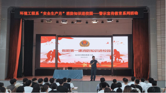 为营造“人人讲安全,个个会应急”的校园安全氛围,6月18日,环境工程系邀请郑州市金水区消防大队宣传讲师冉然为学生开展消防安全宣传讲座。