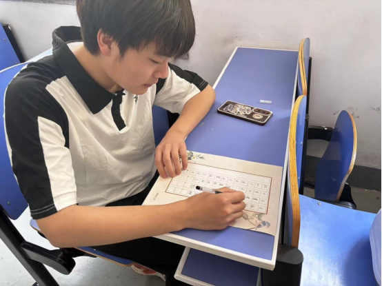 比赛现场,同学们选择自己喜欢的诗词,全神贯注、一笔一画地在纸上用心书写。他们笔法娴熟,字体或端庄秀丽,或自然清新,或潇洒飘逸。整个赛场弥漫着浓浓的墨香,传递着书法艺术的独特魅力。本次比赛共收到参赛作品35份,活动组委会从字体结构、笔画规范、整体美感等多个方面综合评定,评选出一等奖3人、二等奖6人、三等奖9人。