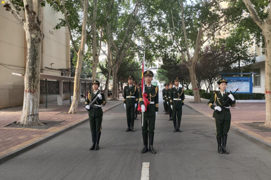 早上6点30分,伴随着庄严的国歌声,鲜艳的五星红旗缓缓升起,全体师生行注目礼。