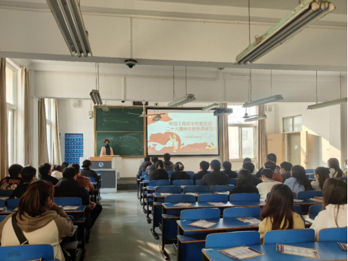 3月2日,环境工程系学生党支部组织开展党的二十大精神专题党课,由系学生党支部书记董晓明主讲,系入党积极分子和部分学生干部参加。