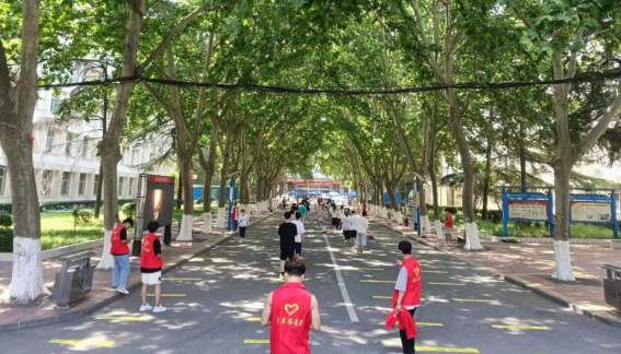 夏日清晨的梧桐大道上,伴随着阵阵清脆鸟鸣,学校里新一轮的核酸检测即将启动。我带领学生干部志愿者们早早赶到了核酸检测现场,清点完物料立马开始布置现场,紧接着投入紧张的核酸检测工作中。