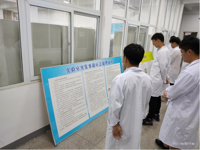 6月29日,环境工程实训中心举行化学实验室安全事故应急演练活动。活动中,实验室负责人带领学生学习了实验室安全知识、典型事故案例,了解了实验室安全隐患及其应急处理措施,并组织学生开展了化学品泄漏事故应急处理演练。演练以学生在实验过程中不慎打翻化学溶液为背景,对有序撤离、及时喷淋冲洗等环节进行了重点演习。