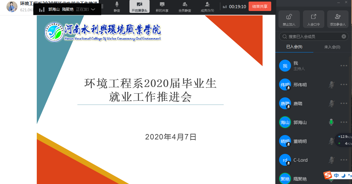 2020年4月7日上午,环境工程系利用钉钉平台召开2020届毕业生网络就业推进会,系就业创业专班成员、毕业班辅导员、导师、就业专干参加了会议。