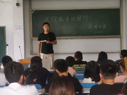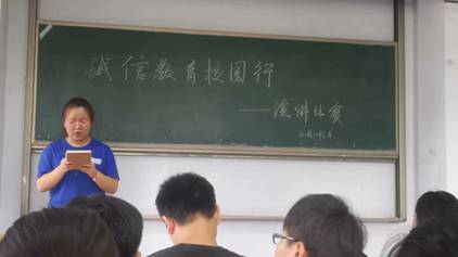 为了大力推进诚信教育,金融知识普及教育,引导广大青年学生珍爱信用、理性借贷不负信任,2019年6月26日中午12点30分,环境工程系在南教105组织开展了以“诚信校园行”为主题的演讲比赛。经过激烈的角逐,七名同学分别获得了一、二、三等奖。