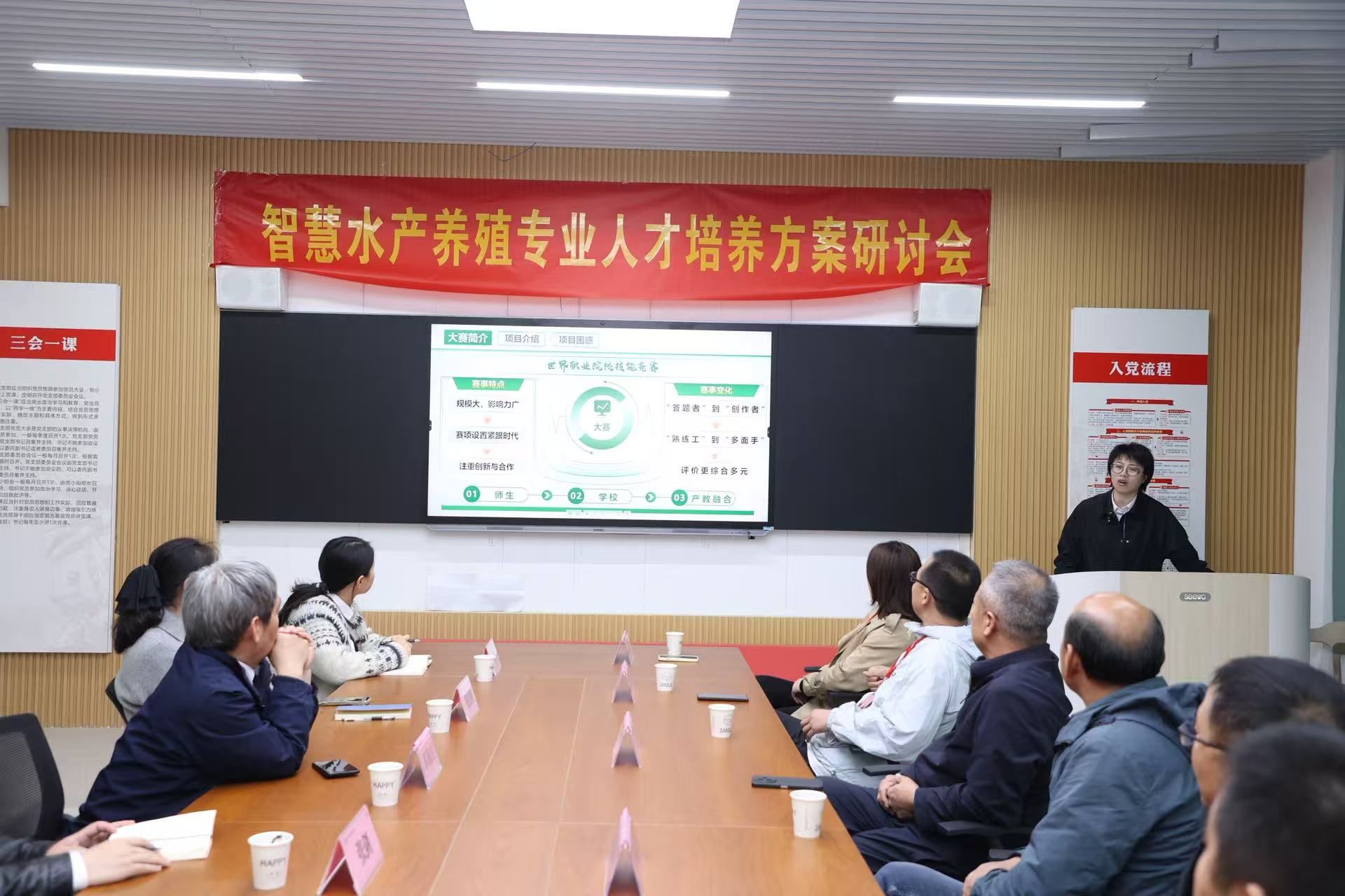 张剑介绍了本次研讨会的主题与目标。他指出,随着物联网、大数据、人工智能等技术在水产养殖领域的深入应用,行业对高素质技术技能人才的需求日益迫切。学院亟需优化现有人才培养方案,强化产教融合,提升学生的技术应用与创新能力。