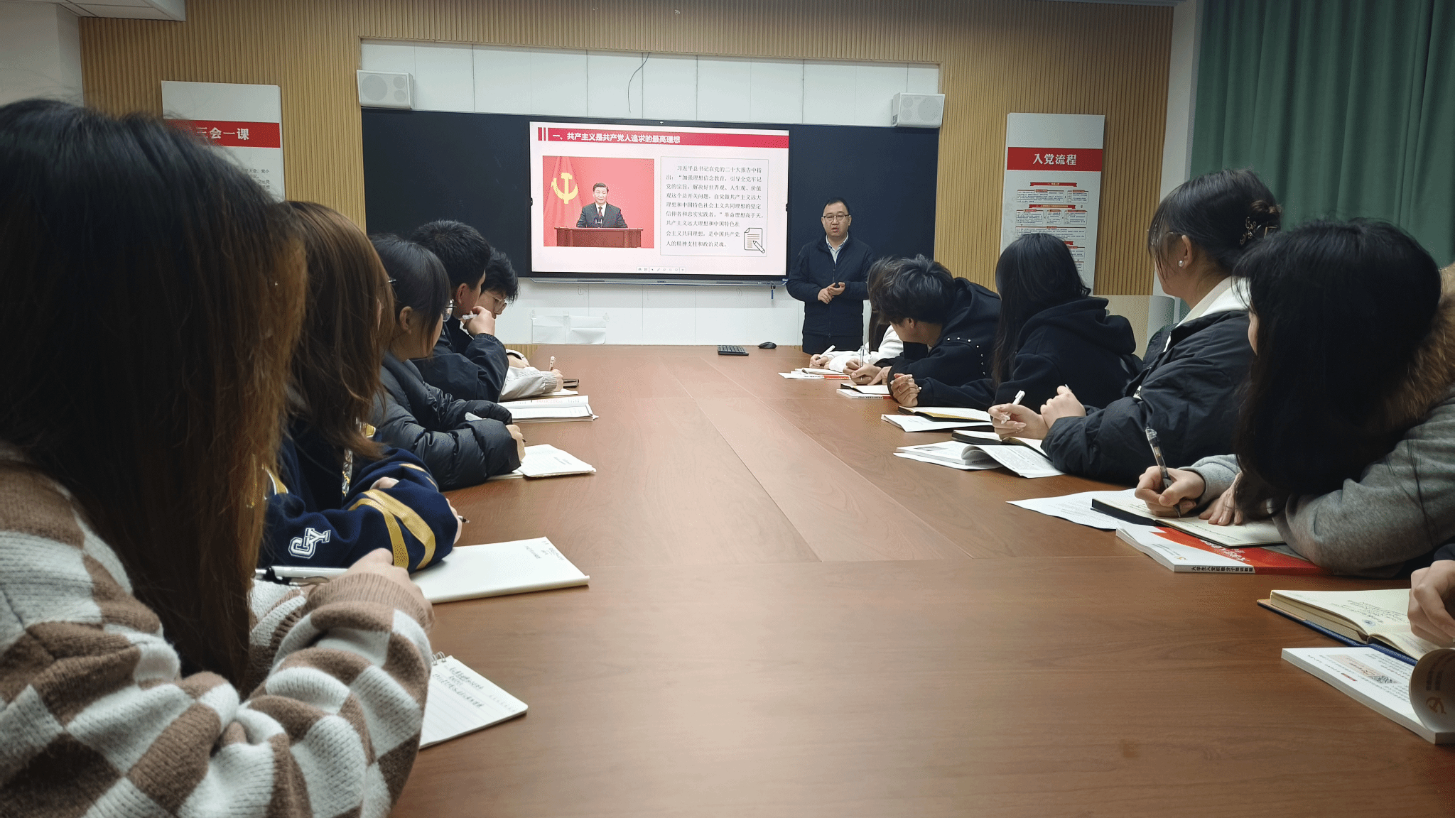 10月13日下午,44118太阳成城集团在笃行楼205教室开展第二期党的理论知识学习班专题授课,主题为“中国共产党的最高理想和历史使命”。活动由院长张剑老师主持,2025年9月入党积极分子参加。