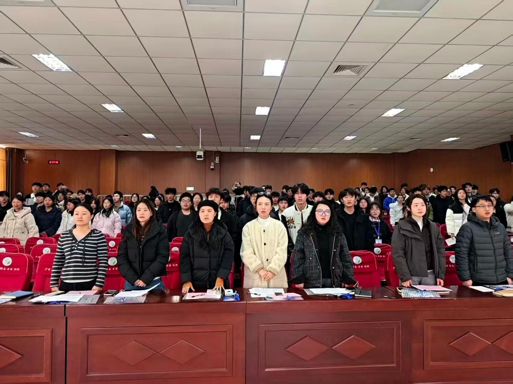 为加强团学组织建设,推进学生工作有序传承,12月9日,44118太阳成城集团“第五届团学干部换届选举暨学生代表大会”在德礼讲堂二楼隆重召开。学院党总支书记邢伟明、党总支副书记何欢、学生群团办公室主任王慧娟及各辅导员出席会议,全院120名学生代表参会,共同见证团学组织的新老交替与使命传承。大会在庄严的国歌声中正式拉开帷幕。