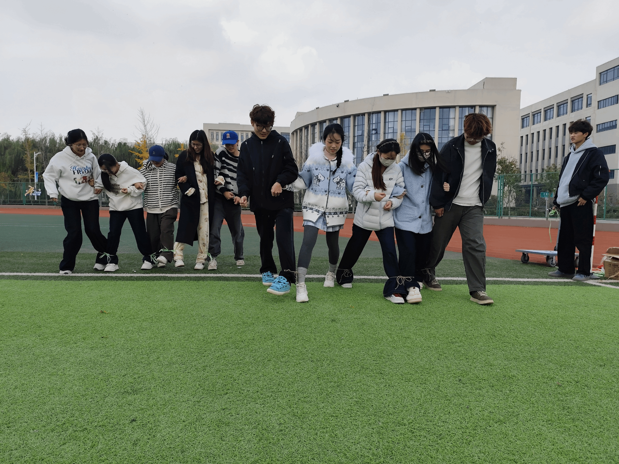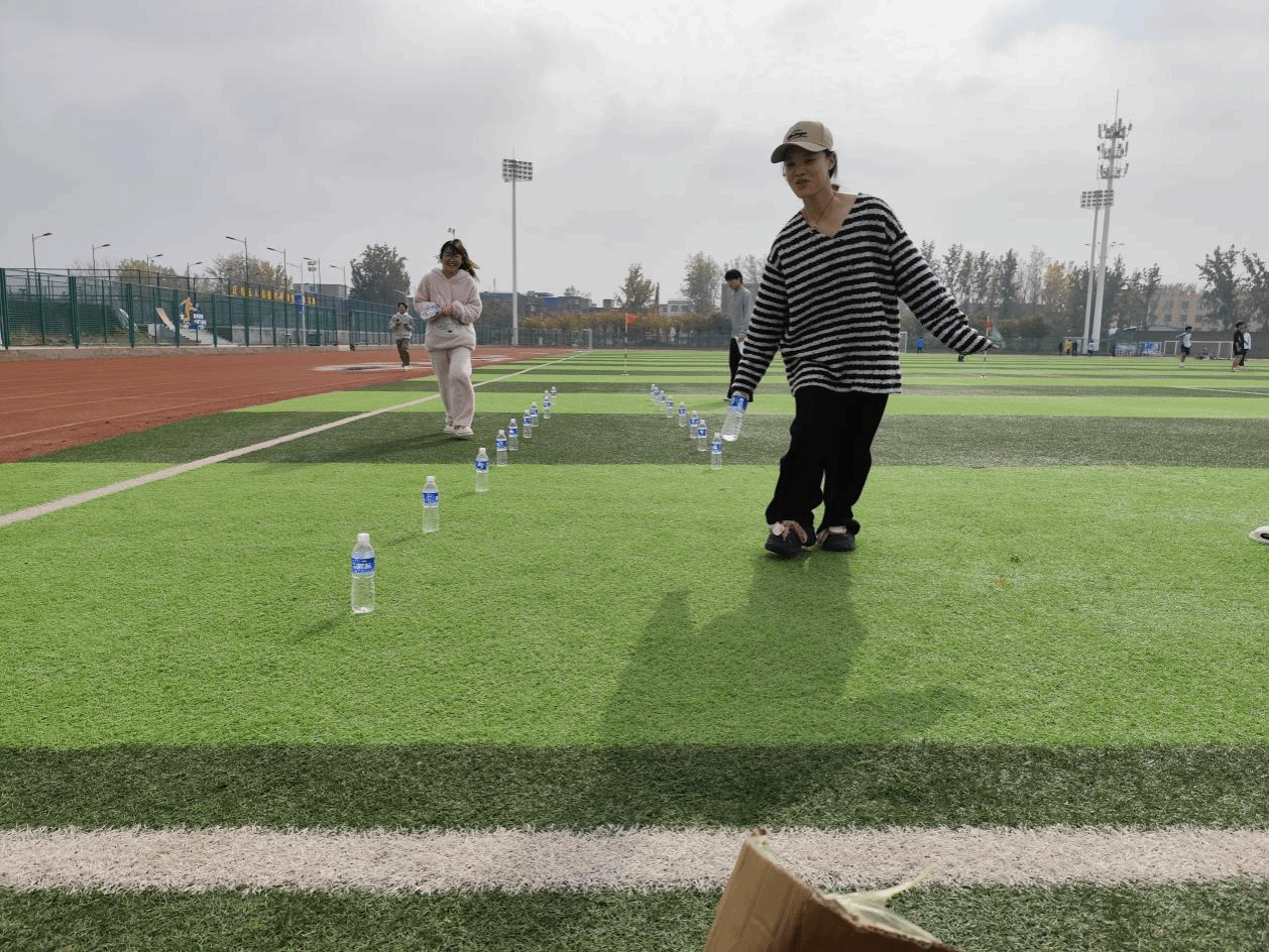 本次运动会注重团队配合与互动体验,共设置两项集体竞赛项目:“五人六足”项目重点考验团队的默契与协调能力。参赛队员肩并肩、腿绑腿,在整齐的口号声中步调一致、协同向前。从初次练习时的磕磕绊绊,到比赛时的默契冲刺,每一步都凝聚着信任与协作的力量,展现了团队一心的精神风貌。“从远到近从近到远捡瓶子”项目则融合了速度、记忆与策略。队员们需在快速移动中按指定顺序拾取瓶子,既考验个人反应能力,也强调团队分工与战术配合。赛场上身影穿梭、气氛紧张热烈,欢笑声、呐喊声、助威声此起彼伏,将活动推向一个又一个高潮。活动期间,学院相关负责人也来到现场观摩指导,为同学们加油鼓劲,并与大家亲切交流。此类活动是学院推动“五育并举”、促进学生全面发展的重要载体,希望大家在运动中享受乐趣、锤炼意志、增进友谊。