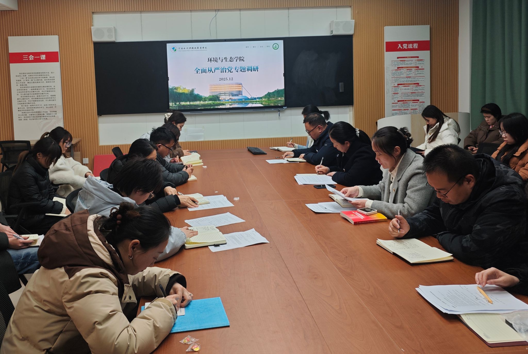 会议最后,张竟超校长围绕全面从严治党工作开展专题工作,通过听取学院党建工作汇报、与党员教师代表座谈等方式,重点了解学院在主体责任落实、意识形态工作、廉政风险防控、党建与业务融合等方面的情况。她要求学院:一要强化政治引领,将党纪学习教育与生态环保行业特色相结合,引导党员教师知敬畏、守底线;二要健全防控机制,针对科研项目管理、设备采购、职称评审等关键环节,完善流程规范,实现全程监督;三要推动党建与业务深度融合,将党建工作成效体现到专业建设、科研攻关、人才培养等具体工作中,以高质量党建引领学院生态教育事业高质量发展,为学校服务河南生态保护大局提供坚强保障。