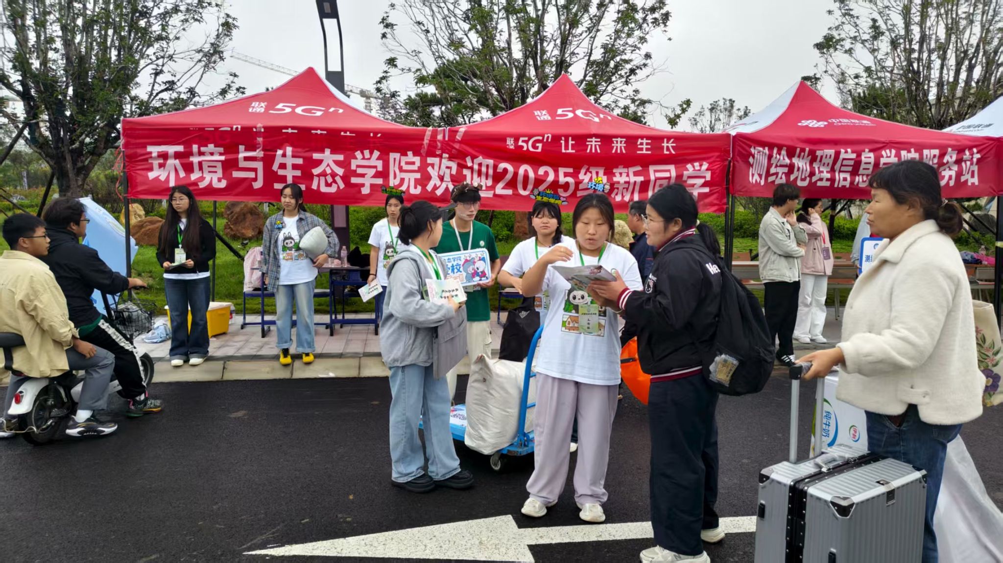 迎新工作中,志愿者团队的身影格外动人。他们由学生积极分子、学生会干部和大二优秀学生志愿者组成,以高度的责任心和饱满的热情投入服务。从校门口接引到报到点;从行李搬运到协助办理住宿手续,带领新生熟悉校园环境耐心讲解……他们用实际行动诠释了环境与生态学院学子的责任担当和良好风貌。各班辅导员在指定报到处接待新生,发放内含校园拼图、水敏卡、院徽别针等精美礼品的“迎新盲盒”,让大家感受到学院的仪式感和归属感。