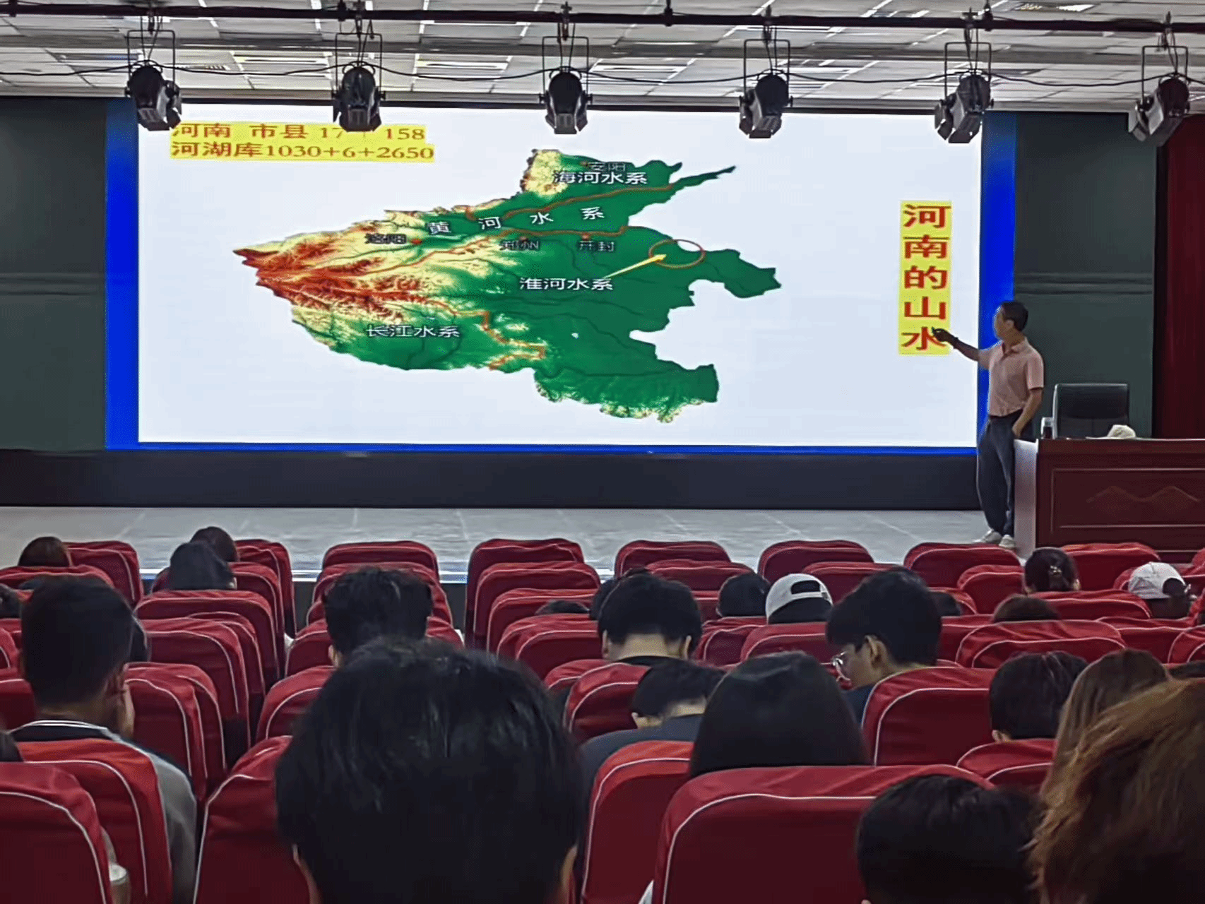 讲座系统梳理了中国水利水资源发展历程、本科与职业教育体系,深入探讨了生态文明建设背景下的水事业使命,并结合河南省情,重点介绍了河南水系格局、河湖库资源分布特点及“八横六纵、四域贯通”的现代水网规划。李教授指出,河南作为国家水网核心区,肩负保障京津冀供水安全和维护黄河淮河下游防洪安全的重要使命,亟需加强水资源集约利用、水生态修复与水文化传承。