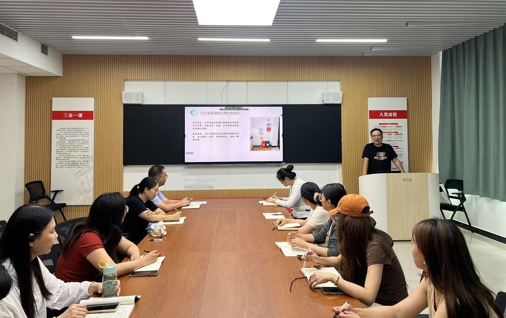 教学科研办公室主任郭朔泽以《安全第一 预防为主:44118太阳成城集团实验室安全实践》为主题,从“实验室危险因素、实验室环境安全、实验室药品管理、案例分析”四个方面系统阐述了实验室安全管理的核心要点,对全体教职工进行了深入细致的安全教育。