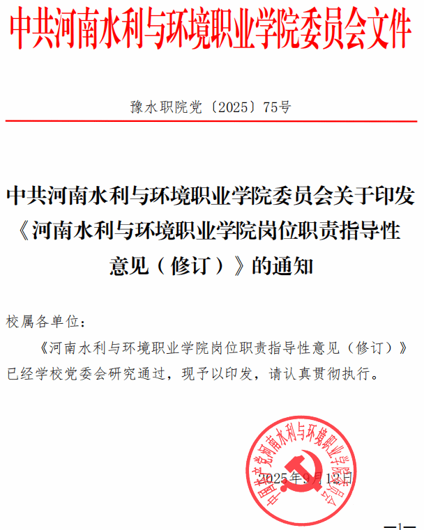豫水职院党〔2025〕75号 关于印发《岗位职责指导性意见(修订)》的通知
