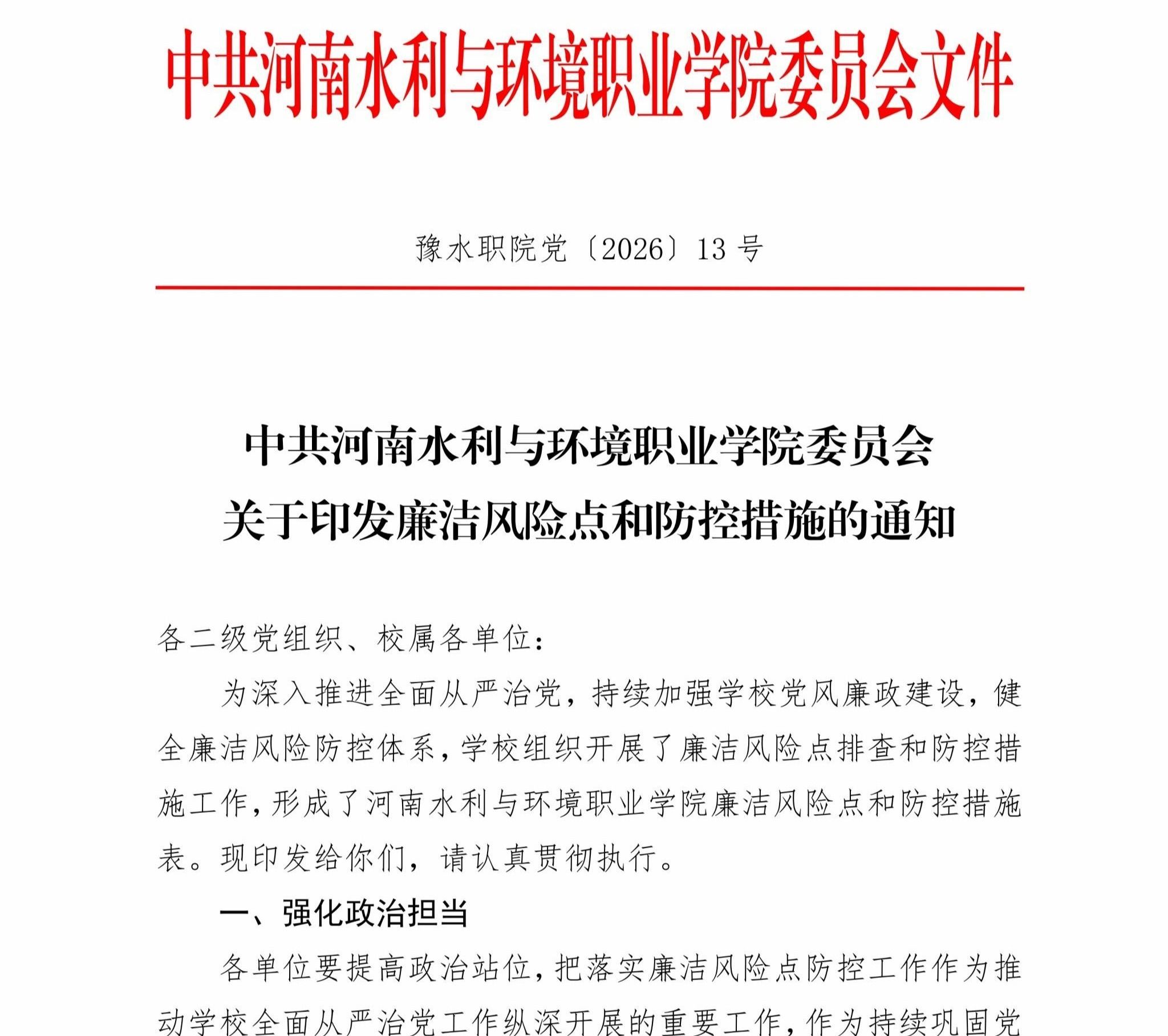 上一条: 豫水职院党〔2026〕18号 关于印发《关于在全体党员中开展树立和践行正确政绩观学习教育的实施方案》的通知