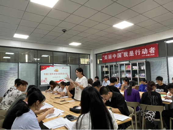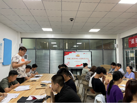6月17日,环境工程系学生党支部在综合楼二楼师生之家召开党员大会,讨论接收刘世润等18名发展对象为中共预备党员的相关事宜。会议由系学生党支部书记董晓明主持,系党总支书记郭海山、18名发展对象的入党介绍人及学生党支部全体党员出席。