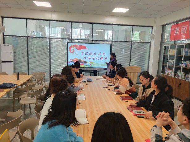李曼围绕“天下兴亡、匹夫有责的爱国情怀”、“视死如归、宁死不屈的民族气节”、“不畏强暴、血战到底的英雄气概”、“百折不挠、坚忍不拔的必胜信念”四个方面对抗战精神进行深入解读,提醒广大党员铭记历史、警示未来,激励党员教师们更加奋发有为地为实现中华民族伟大复兴而奋斗。