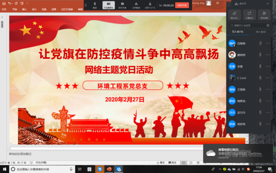为充分发挥党员先锋模范作用,确保学院疫情防控工作有序开展,环境工程系党总支所属支部于2020年2月27日下午通过钉钉直播平台,开展“让党旗在防控疫情斗争中高高飘扬”网络主题党日活动。