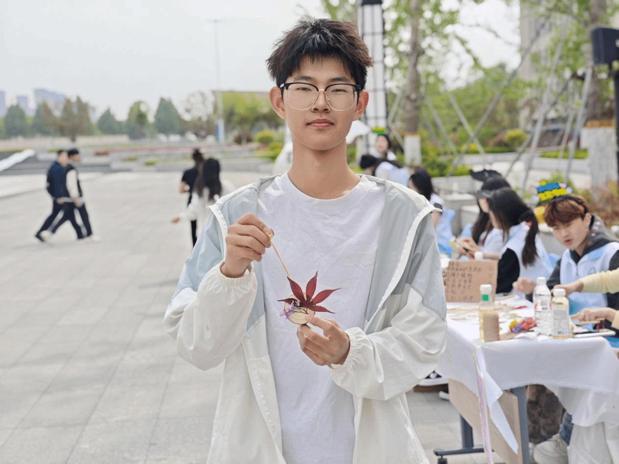 活动现场,同学们在工作人员指导下有序创作,将新鲜花叶精心摆放、轻轻敲印,让植物脉络与色彩自然晕染,定格春日气息;创意发型区以花叶为饰,打造春日专属造型;木片挂饰、植物木框创作中,大家巧搭素材,将春日美好封存为特色艺术品。创作中,学生规范操作、保持场地整洁,践行文明环保理念。