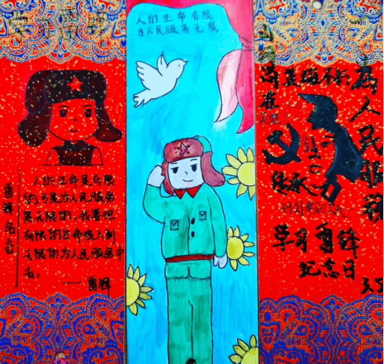 活动鼓励学生充分发挥创意,运用手绘、书法等形式制作雷锋主题书签。同学们积极响应,将雷锋画像与经典语录融入创作。有的书签上,雷锋坚毅的形象跃然纸上,传递奋进力量;有的书签以优美书法呈现“人的生命是有限的,可是,为人民服务是无限的”等话语,尽显对雷锋精神的尊崇。