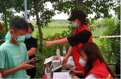 8月23日-8月25日,孙田振在安阳市高庄镇东小庄村担任疫情防控志愿者,在村口卡点轮流值班,负责进村人员信息登记、扫码测温和消毒等工作。她说:“志愿服务工作的意义不仅仅在于服务他人,同时也锻炼了我的意志和耐心,让我成长了很多。”