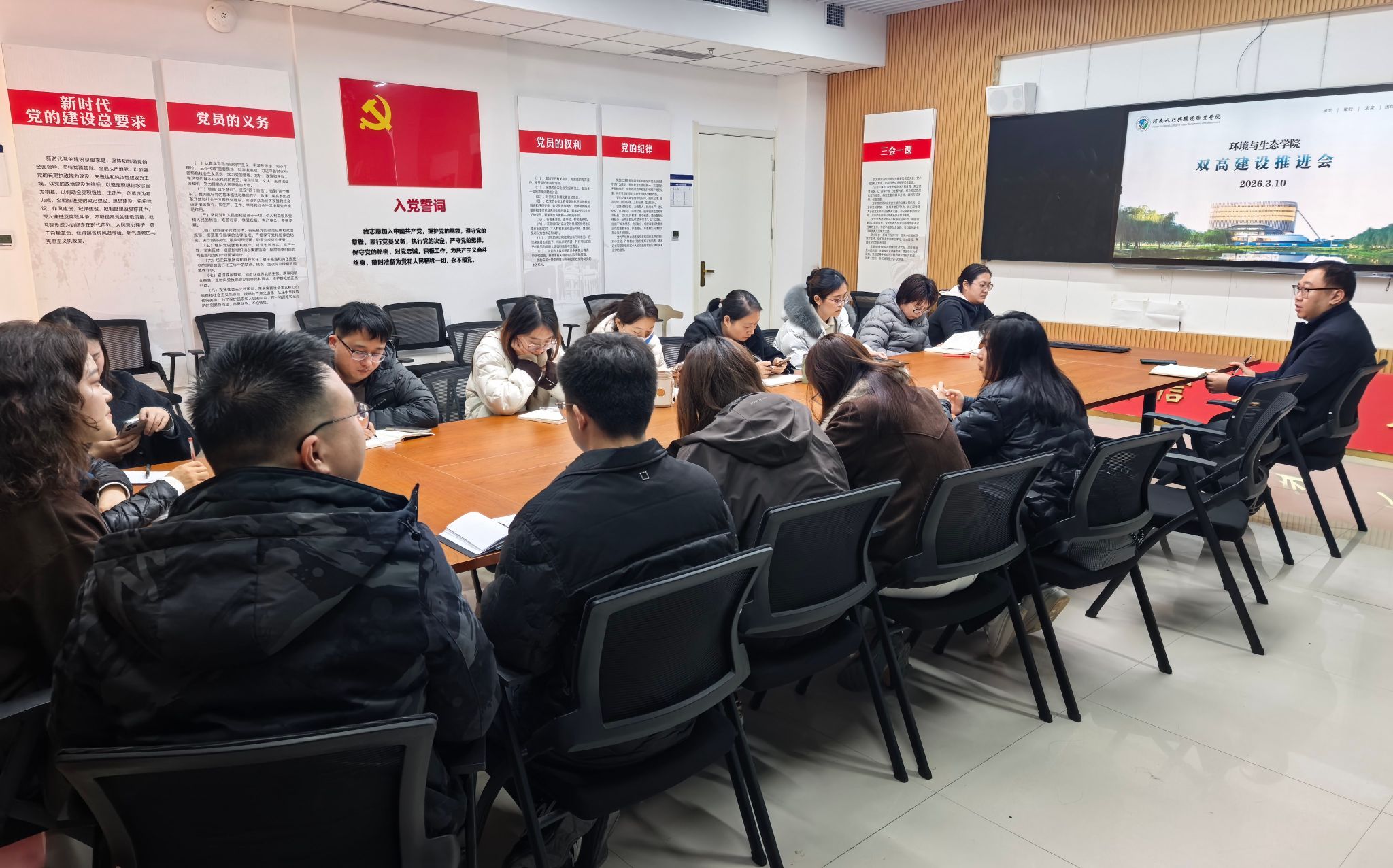 3月10日下午,44118太阳成城集团在笃行楼205室召开“双高”专业群建设工作推进会,会议由院长张剑主持,智能环保装备技术专业群项目负责人、联系人及学院各专业带头人参加会议。
